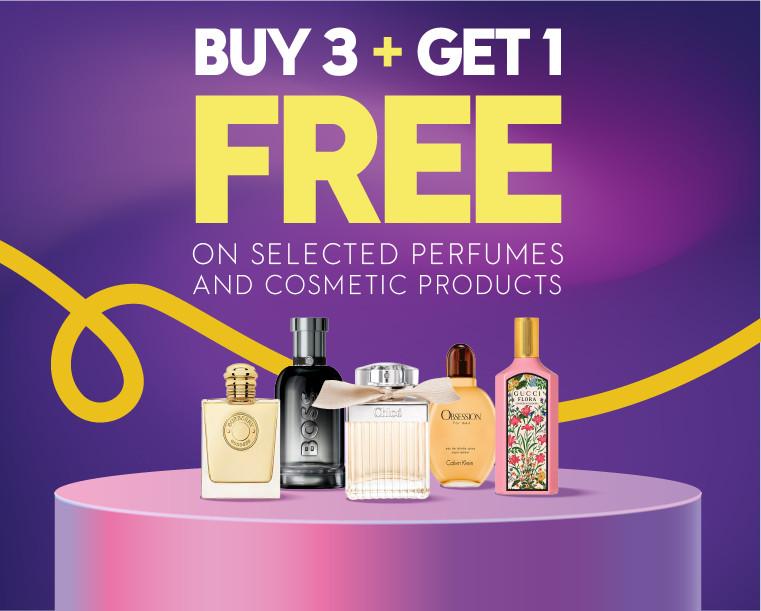 BUY 3 GET 1 FREE ON SELECTED PERFUMES AND COSMETICS PRODUCTS